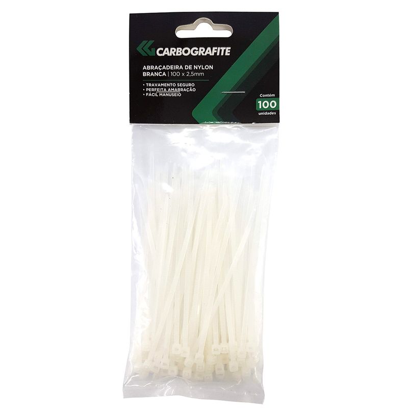 Abraçadeira de Nylon 100 x 2.5 mm Branca - Carbografite