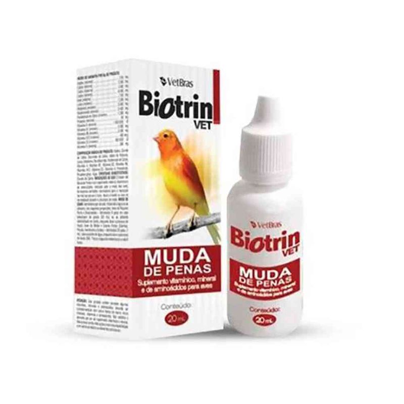 Biotrin - Muda de Penas é um suplemento mineral, vitamínico e de aminoácidos, indicado para a muda das aves, fornecendo nutrientes necessários para a reposição normal das penas e bicos. Ajuda a manter as aves na normalidade durante o processo de muda.