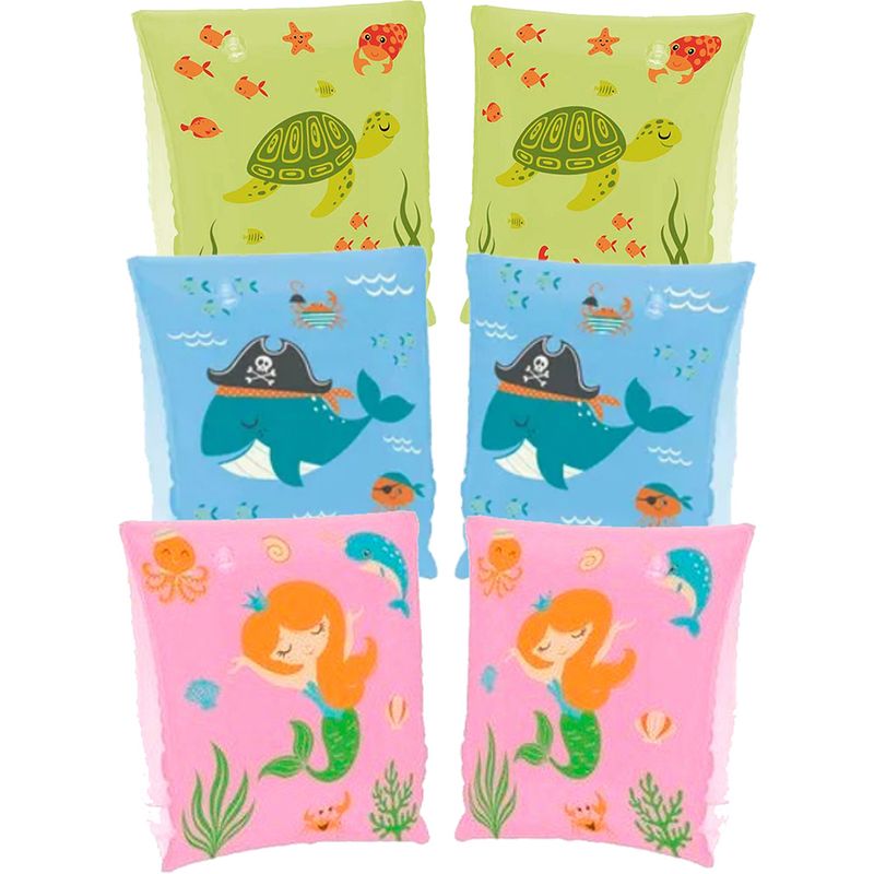 Com estampa de desenhos sortidos, as Boias de Braço da Mor possuem duas câmaras de ar independentes, o que dá mais segurança para os pequenos, pois em caso de furo ou esvaziamento acidental de uma delas a outra câmara garante sua estabilidade na água. Recomendadas para crianças entre 6 e 12 anos, acompanham kit para reparo e duas válvulas de segurança. Peso máximo suportado: 50 Kg. Atenção! Este não é um equipamento salva-vidas. Nunca deixe crianças sozinhas perto da água sem supervisão de um adulto.