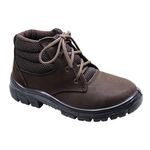 Botina de amarrar Imbiseg, em couro nobuck, marrom, com lingueta e colarinho microperfurado em dupla frontura, ilhoses e cadarço em poliéster, e solado em poliuretano. Forração em não tecido transpirável. Palmilha de montagem sintética, não tecido, costurada pelo sistema strobel. Acompanha sobrepalmilha em EVA, removível, dublada em tecido para absorção do suor.