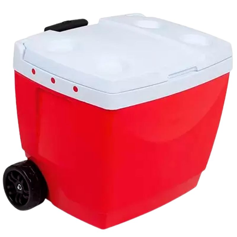 Para acompanhar seu dia na praia, camping ou até mesmo garantir as bebidas geladas para o seu churrasco, a Caixa Térmica 42 Litros MOR é item indispensável!Desenvolvida com polipropileno injetado 100% virgem, atóxico e sem odor a Caixa possui estrutura lisa para facilitar a limpeza, além de isolamento térmico maciço em isopor, garantindo melhor conservação térmica e durabilidade.Projetada para resistir a movimentações e alterações de temperatura, ela conta com prática alça retrátil com três regulagens de altura, além de rodas largas de rolagem suave, que proporcionam uma ótima estabilidade, facilitando deslocamento em todos os tipos de terreno.Seu amplo espaço interno pode acondicionar até 56 latinhas de 350 ml em pé, ou 44 latas de 473 ml deitadas ou em pé, ou 29 garrafas de 600 ml deitadas, ou 8 garrafas de 2 litros deitadas ou de pé (todas essas capacidades desconsiderando o uso de gelo). Conta ainda com tampa articulada fixa na caixa para evitar o contato com o chão e estrutura projetada para apoiar quatro copos, latas ou garrafas na parte superior. Disponível nas cores azul e vermelha, a Caixa Térmica 42 litros MOR traz praticidade para os seus momentos de lazer e preserva a temperatura de suas bebidas e alimentos por muito mais tempo. Adquira já a sua!