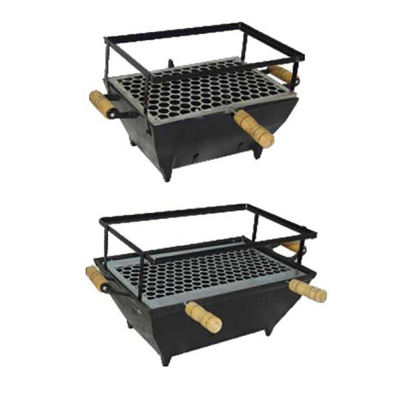 Acompanha uma grelha em tela moeda em aço inoxidável ideal para uso doméstico, apartamentos e camping. Portátil e econômica no gasto de carvão.