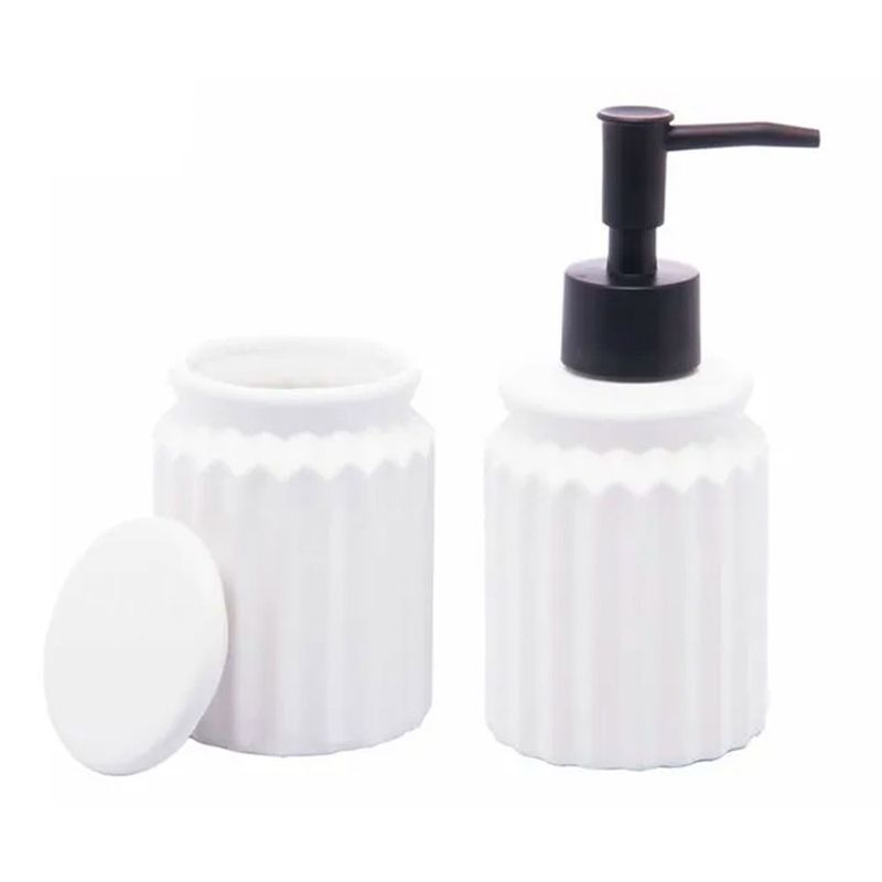 Este conjunto de cerâmica branco inclui 2 peças essenciais para seu banheiro, combinando funcionalidade e elegância. Ideal para organizar seus itens de higiene pessoal.