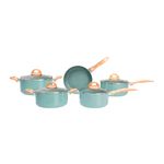 O Jogo de Panelas 5 Peças Botanika/Brinox é fabricado na cor Verde com estrutura em alumínio que cozinha por igual e mais rápido. Os cabos e alças são em baquelite soft-touch com efeito amadeirado. As tampas em vidro temperado têm saídas para o vapor. Livre de PFOA, o revestimento interno é com antiaderente Pro Ceramic e Mineral Resist de três camadas. O fundo de indução permite a utilização em todos os tipos de fogões.