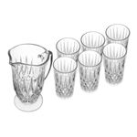 A jarra e os copos apresentam um padrão diamante refinado, adicionando um toque de elegância à sua mesa. Este design sofisticado realça a apresentação das suas bebidas.