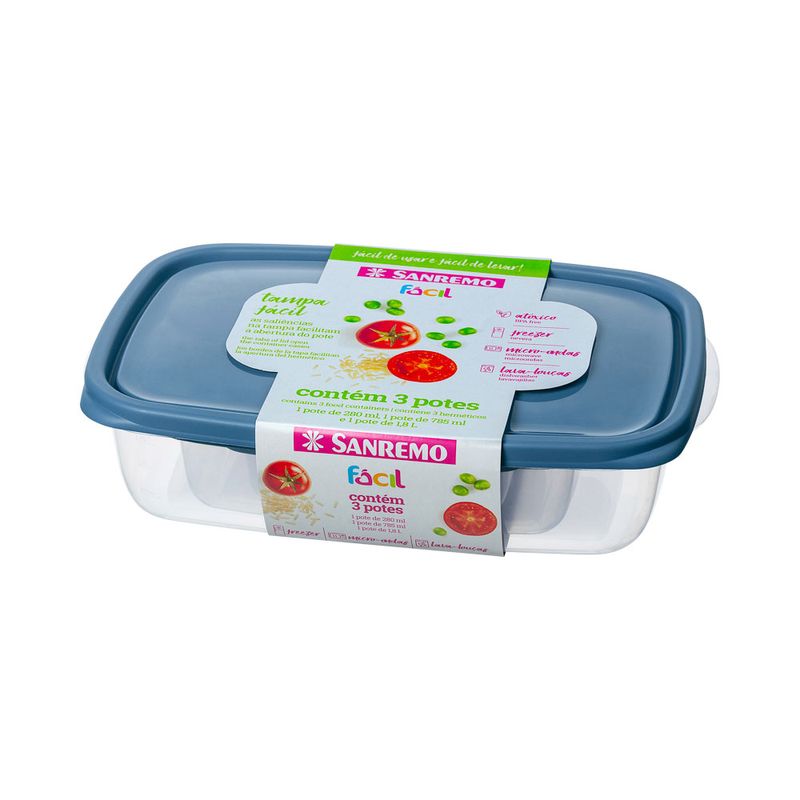 Conjunto com 3 potes: cada peça com design inovador e pegadores laterais que facilitam o manuseio quando o alimento está muito quente ou gelado. É mais estilo para a sua cozinha e a praticidade que você precisa para encarar o dia a dia. É fácil de usar. É fácil de medir. É fácil de abrir. Vai ser fácil mesmo você se apaixonar.
