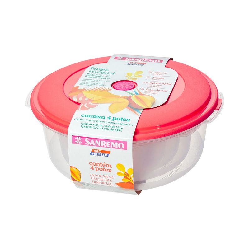 Conjunto de 4 Potes Plásticos Redondos 530 ml, 1,3 L, 2,5 L e 4,45 L - Sanremo