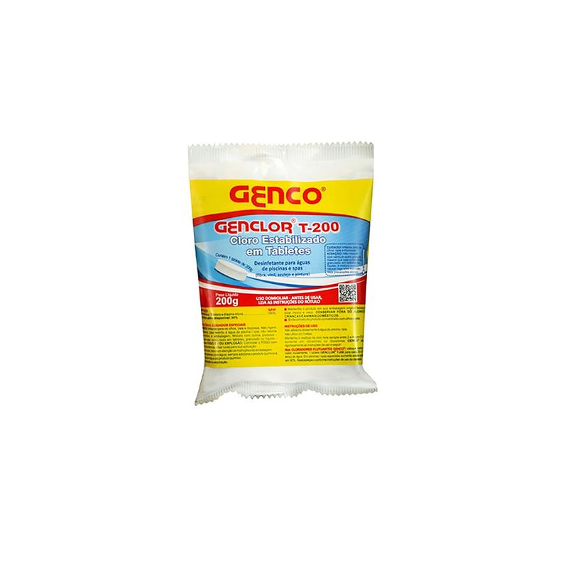 Tricloro em tabletes concentrado, contém 90% de cloro ativo. Possui estabilizante que inibe a degradação do cloro pelos raios UV (raios solares). GENCLOR® TABLETES CLORO ESTABILIZADO GENCO® apresenta dissolução lenta para cloração contínua e automática em cloradores ou dosadores automáticos por vários dias. Indicado para piscinas residenciais e institucionais.