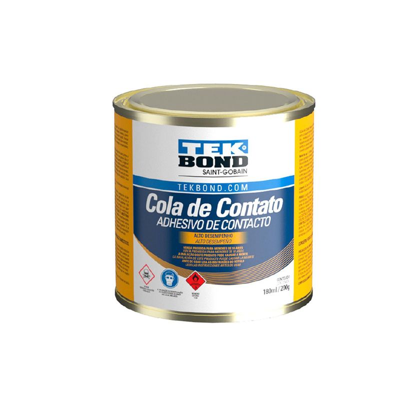Cola de Contato Tekbond é um adesivo de contato à base de borracha de policloropreno desenvolvido para a colagem de vários tipos de materiais entre si (ex.: madeira-madeira; couro-couro) ou combinados (ex.: madeira-couro). Fácil de usar, oferece secagem rápida, boa resistência à água e excelente resistência inicial.