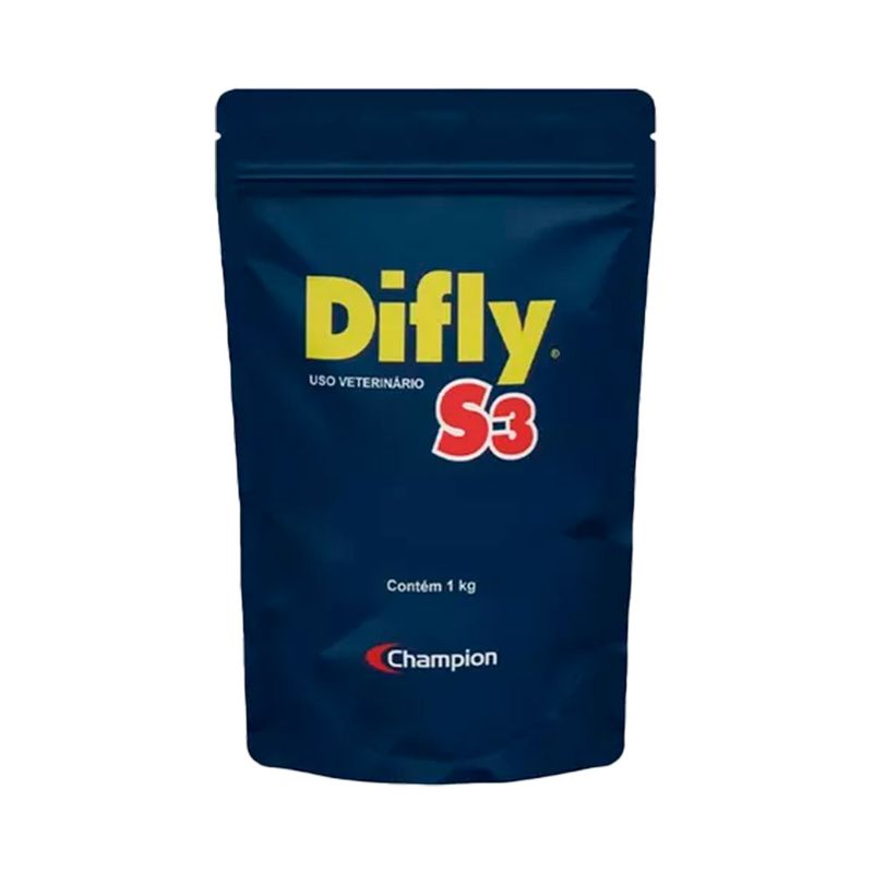 Difly S3 é um inibidor do desenvolvimento de insetos, indicado para a prevenção do desenvolvimento de infestação por mosca-dos-chifres (Haematobia irritans), mosca doméstica (Musca domestica), mosca- dos-estábulos (Stomoxys calcitrans) e por carrapato (Rhipicephalus (Boophilus) microplus). Controle do carrapato e da mosca-dos-chifres, deve ser misturado ao sal branco, sal mineral, proteinado ou mesmo na ração e em seguida basta deixar à vontade no cocho. Sem manejo, sem resistência e sem resíduo na carne ou no leite.