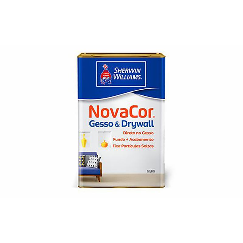 Novacor Gesso & Drywall é uma tinta à base de emulsão acrílica desenvolvida especialmente para aplicação direta sobre gesso e drywall (gesso acartonado), proporcionando efeito decorativo e de proteção à superfície. Também pode ser aplicado em superfícies internas de reboco e massa corrida. Possui ótima aderência e poder de penetração. Economiza tempo e mão-de-obra pois atua como fundo e acabamento, fixando partículas soltas e secando rapidamente.