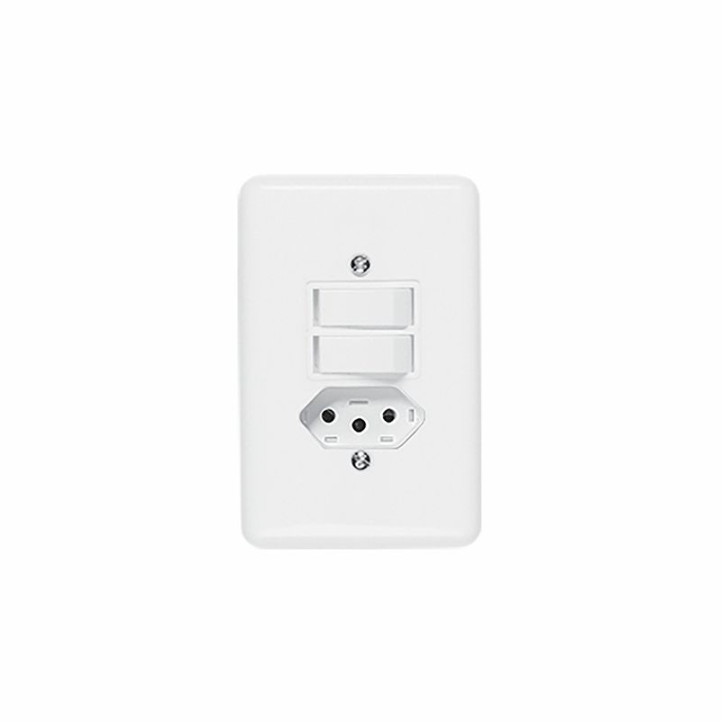 Prático e eficiente, indicado para instalações elétricas de até 250V, Interruptor 2 teclas simples + tomada Stylus 20210.