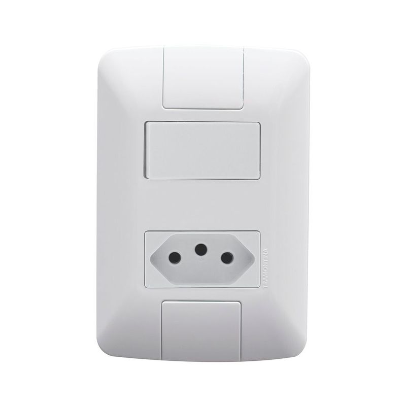 Utilize o Conjunto 4x2 com 1 Interruptor Simples 6 A 250 V e 1 Tomada 2P+T 20 A 250 V Tramontina Aria Branco e tenha um item completo para ligar equipamentos elétricos e eletrônicos e ainda acender as luzes do ambiente. Produzido em termoplástico com acabamento brilho na cor branca, ele possui sistema modular com o suporte incorporado e furo oblongo que facilita a fixação e a regulagem da placa à parede, deixando-a reta; além disso, sua instalação não fica aparente, o que deixa seu cômodo ainda mais bonito.