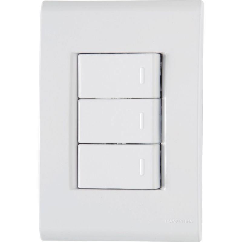Iluminar os ambientes da sua casa ficou muito mais fácil e prático com o Conjunto 4x2 com 3 Interruptores Simples Tramontina Liz 10 A 250 V Branco. Produzido em termoplástico branco, ele vai garantir maior praticidade e proporcionar um acabamento perfeito entre a placa e a parede, sem deixar frestas e vincos na instalação. Além disso, possui furo oblongo que facilita a fixação e a regulagem da placa à parede e evita que ela fique desalinhada. Sua fixação não é aparente e pode ser utilizada tanto em paredes de alvenaria, quanto em paredes de madeira. A placa ainda pode ser trocada por outras cores da linha, garantindo maior versatilidade. Com a Tramontina, você tem o melhor para sua casa!