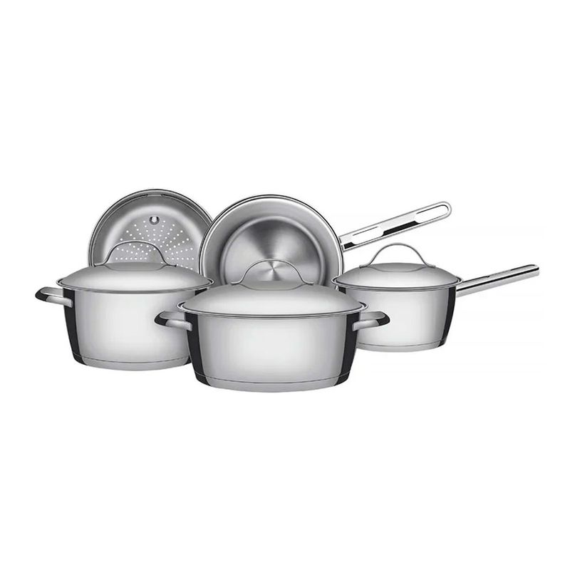 Sua cozinha vai ganhar ajudantes diferenciados com o Jogo de Panelas Tramontina Allegra em Aço Inox com Fundo Triplo e Tampas de Inox 5 Peças da Linha Allegra. Cinco peças perfeitas para auxiliar você nas tarefas do dia a dia, produzidas totalmente em aço inox, elas mantém os alimentos saudáveis já que o material não solta resíduos. Trazem ainda a tecnologia de fundo triplo (aço inox + alumínio + aço inox), que distribui o calor uniformemente, proporcionando um cozimento mais rápido e uniforme, economizando energia e deixando os alimentos aquecidos por mais tempo.