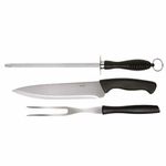 O kit assador da Mor é composto por três peças essenciais para o preparo e manuseio de alimentos durante o churrasco. Ele inclui uma faca para cortar carne, um garfo para espetar e servir os alimentos e uma chaira para afiar a faca. Esse kit é fabricado com materiais de qualidade e é ideal para os amantes de churrasco que buscam praticidade e eficiência no preparo dos alimentos.