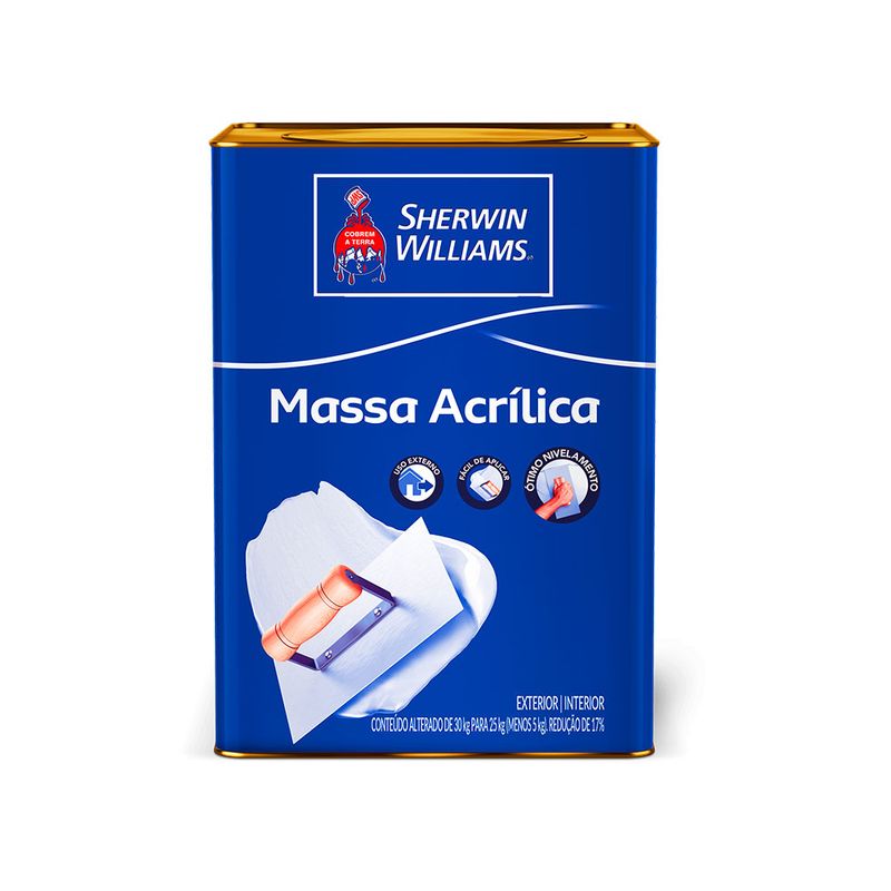 SHERWIN-WILLIAMS MASSA CORRIDA é utilizada para nivelar e corrigir pequenas imperfeições em paredes internas secas e tetos. Sua fórmula inovadora permite fácil aplicação através de diversas ferramentas como: Rolo, Airless e a clássica desempenadeira, além da melhora no lixamento. SHERWIN WILLIAMS MASSA CORRIDA garante qualidade e economia para sua pintura.