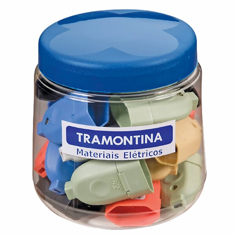 Plugues fêmea embalados em pote plástico contendo 24 unidades, nas cores: branco, preto, verde, bege, azul e vermelho. Possibilita variadas combinações de cores, tornando o ambiente mais colorido. Os plugues são produzidos em termoplástico antichama com componentes condutores e pino maciço em liga de cobre.