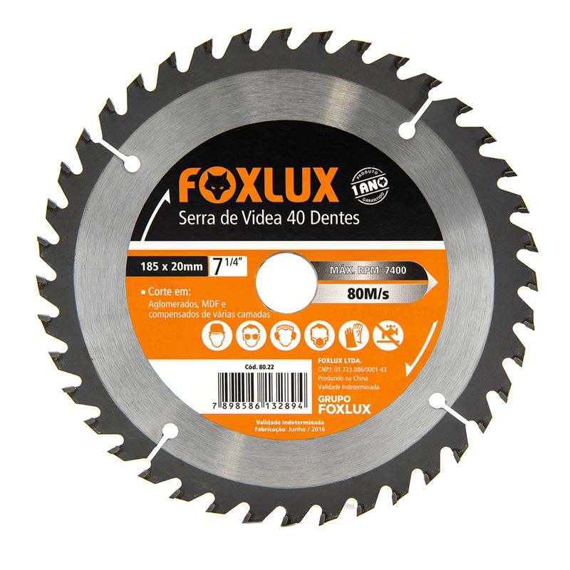 A Serra de Vídea Famastil é composta por um aglomerado de carbonetos de metais raros resistentes ao desgaste. Possui dentes de vídea, garantindo menor ruído e vibrações, e tem rpm máximo de 80m/s. Indicada para corte em madeira e mdf.