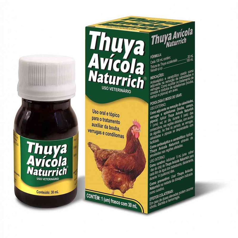 Thuya Avícola é indicado no tratamento de verrugas e condilomas, resultantes de processos infecciosos e de afecções como a bouba avícola. Indicado como adjuvante na remoção de calosidades em aves.