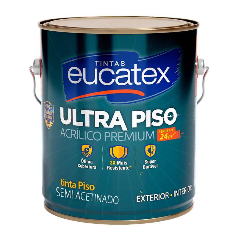 Ultra Piso Acrílico Premium é uma tinta acrílica especialmente formulada para pintura de pisos cimentícios, quadras, calçadas e estacionamentos. Sua nova fórmula atribui ao produto alta resistência, cobertura, aderência e durabilidade. Uso externo e interno.