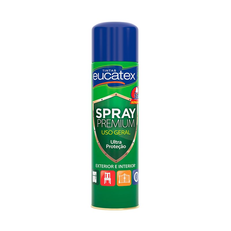 "Eucatex Spray Premium Multiuso foi desenvolvido para aplicação em superfícies de metal (aço e ferro), couro, gesso e cerâmica.Indicada para pintura de geladeiras, bicicletas, móveis de aço, brinquedos, objetos artesanais e decoração em geral, em ambientes externos e internos. Possui ótima aderência, secagem rápida, excelente durabilidade e resistência."