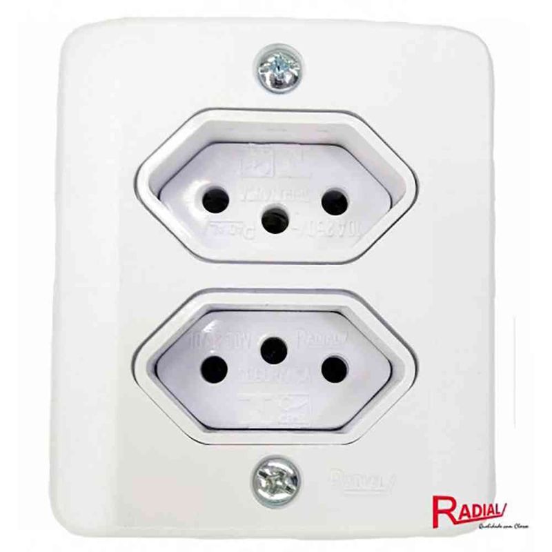 Tomada Linha R 2 P+T Dupla 20 A com Placa Branca - Radial